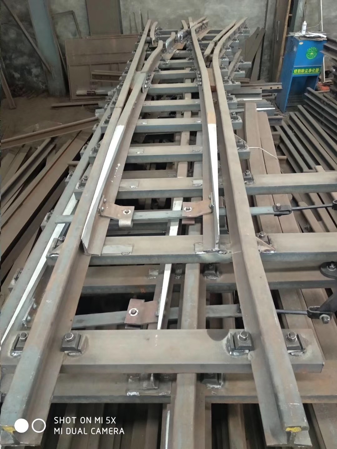 在上世紀六十年代林州人民(原林縣),自力更生,艱苦奮斗,在非常艱難困苦的歲月里,修造了舉世聞名的“人造天河”紅旗渠,被譽為世界八大奇跡之一,在新世紀的今天,林州兒女踏著前輩的足跡,發揚紅旗精神,繼續前進,為振興經濟中原崛起,在原來的基礎上不斷創新發展,使企業躍上了新的臺階。 我公司為上新產品整鑄道岔,斥巨資擴建廠房,引進設備,聘請人才,特聘(原煤炭部北京設計研究院)道岔專家胡工為我公司技術總監,特聘鐵道部寶雞橋梁廠鑄造專家王工為質檢總監,經過多方努力,無數次的試驗,整鑄道岔于2003年終于試制成功,并已批量生產投放市場,受到了各用戶的一致好評和青睞。 拼裝道岔是用螺拴和鉚釘連接在一塊的,使用后經礦車往來的軋壓和雨水的腐蝕,很容易出現螺帽脫落,鉚釘松動,造成機芯解體或損壞,而影響了正常的生產運輸和造成重大安全隱患,而整鑄道岔機芯是高溫一次澆鑄成型,經粹火,正火等多道工藝處理,其金相組織結構嚴密,抗拉抗沖擊性能極高。它是由多種元素組成的低合金剛,耐磨系數是普通拼裝機芯的4倍,從而大大降低了使用單位的生產成本,減少了更換、保修、保養等麻煩,整鑄道岔的優點再者就是承受能力大,運行速度快,使礦進的運輸量大幅度的提升、整鑄道岔的安全性能很好,因為它是一次性澆鑄成型的,在設計和生產過程咽喉部位已加高和加厚(俗稱道岔的有害空間),排除了車輪通過此段掉道的弊端,因此使礦車的速度大幅度提高,為使用單位多創了良好的經濟利益。