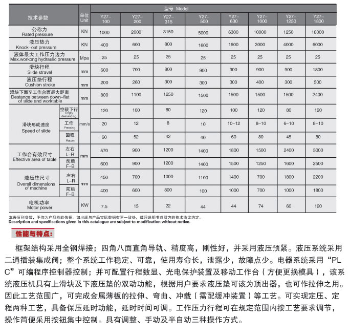 Y27-框架式單動薄板拉伸液壓機